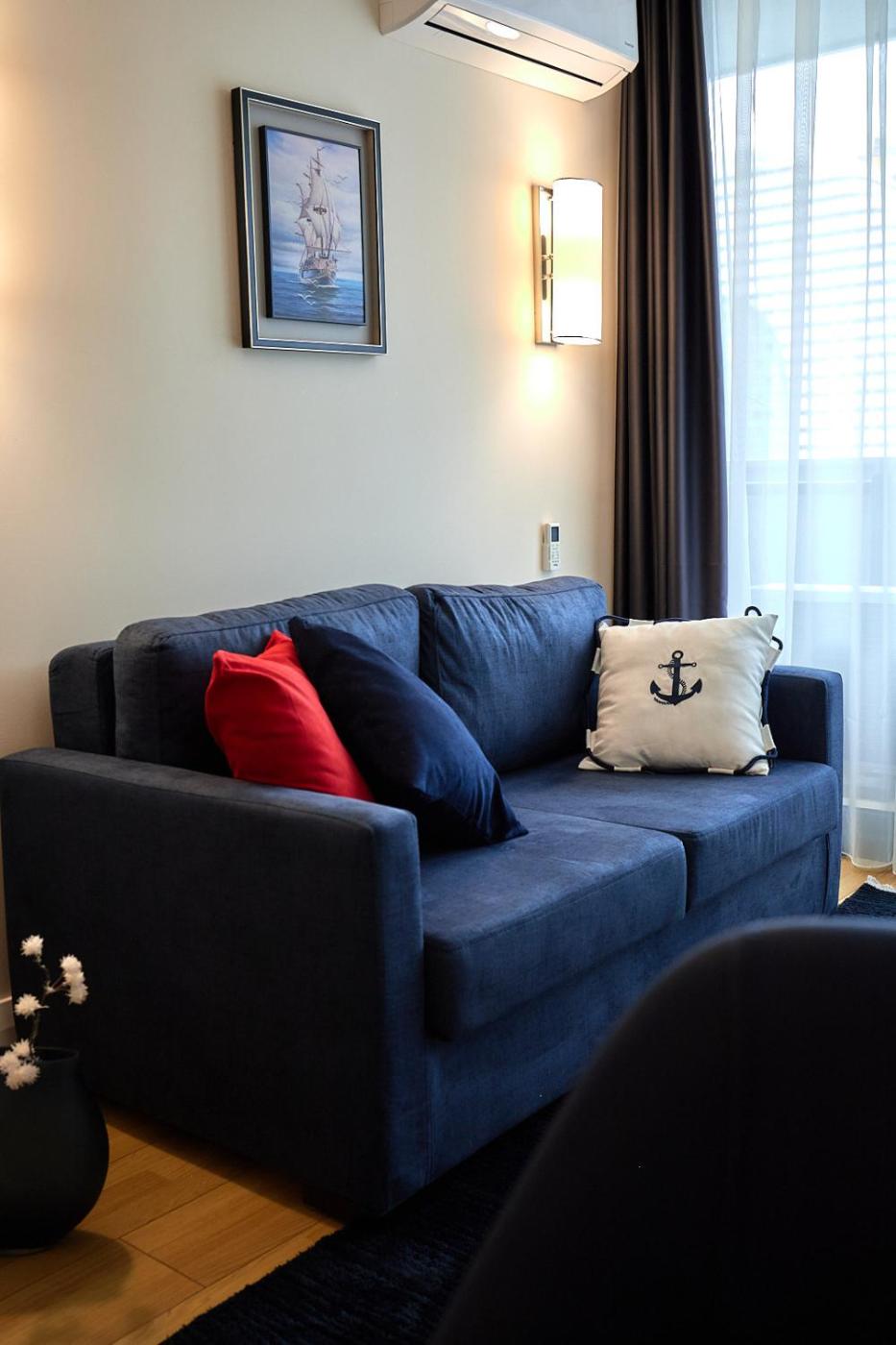 One-Bedroom Apartment with Sea View and Balcony. This air-conditioned apartment comprises 1 living room, 1 separate bedroom and 1 bathroom with a shower. Guests can make meals in the kitchenette that comes with a refrigerator, kitchenware, a microwave and an electric kettle. Featuring a terrace with sea views, this apartment also provides a seating area and a flat-screen TV. The unit offers 2 beds.
