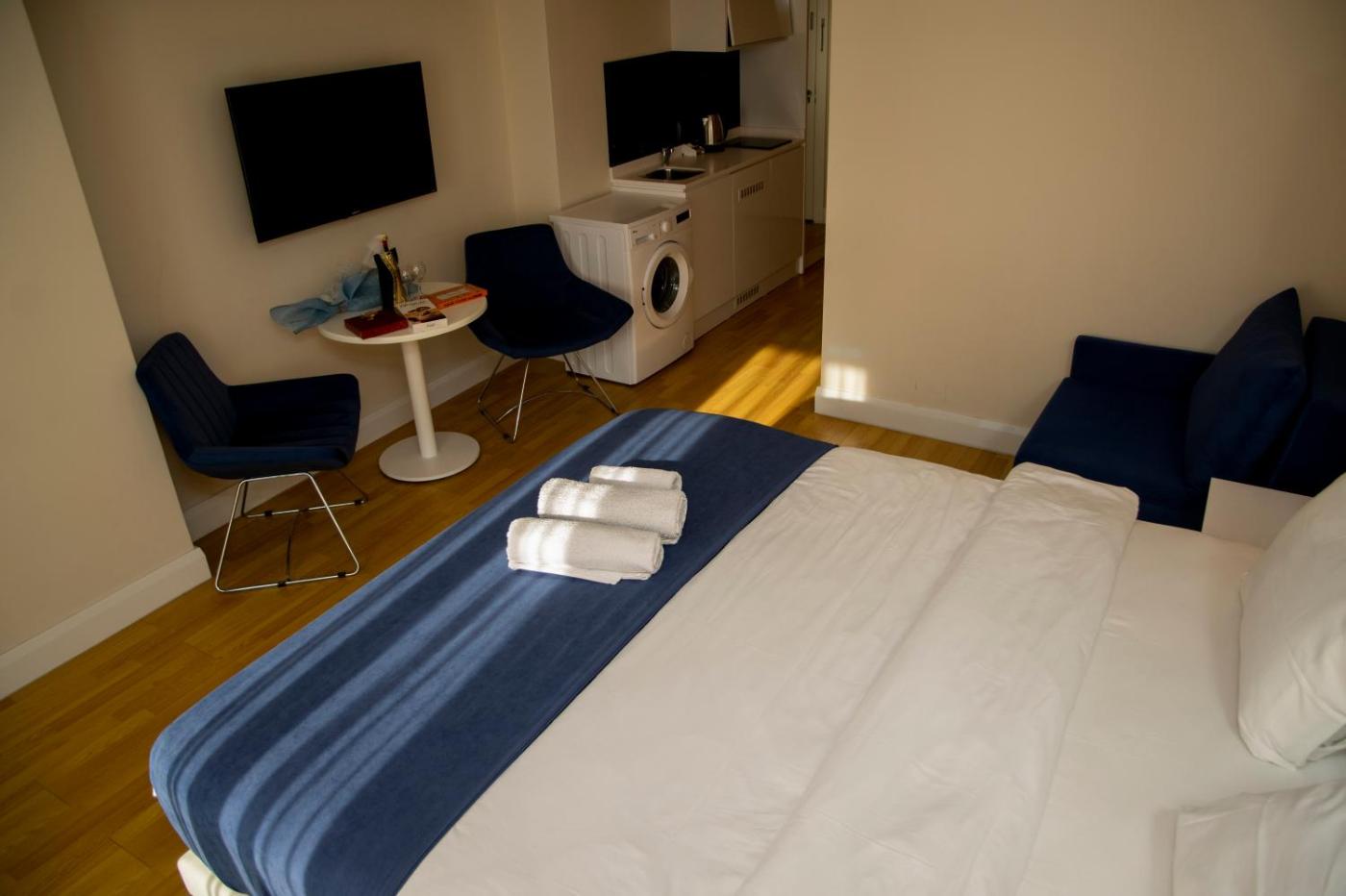 King Studio. Guests will have a special experience as the studio features a pool with a view. Meals can be prepared in the kitchen, which is equipped with a refrigerator, kitchenware, a microwave and a tea and coffee maker. The studio provides air conditioning, a washing machine, a terrace with sea views as well as a private bathroom featuring a bath. The unit offers 1 bed. ;