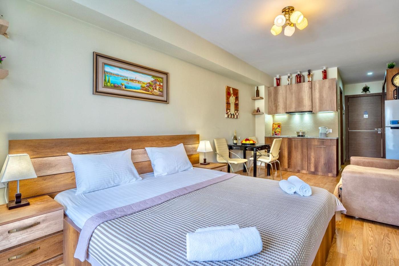 The units at the apartment complex come with air conditioning, a seating area, a flat-screen TV with streaming services, a kitchen, a dining area and a private bathroom with slippers, a walk-in shower and a hair dryer. A microwave, a toaster and fridge are also provided, as well as a kettle. At the apartment complex, every unit has bed linen and towels.