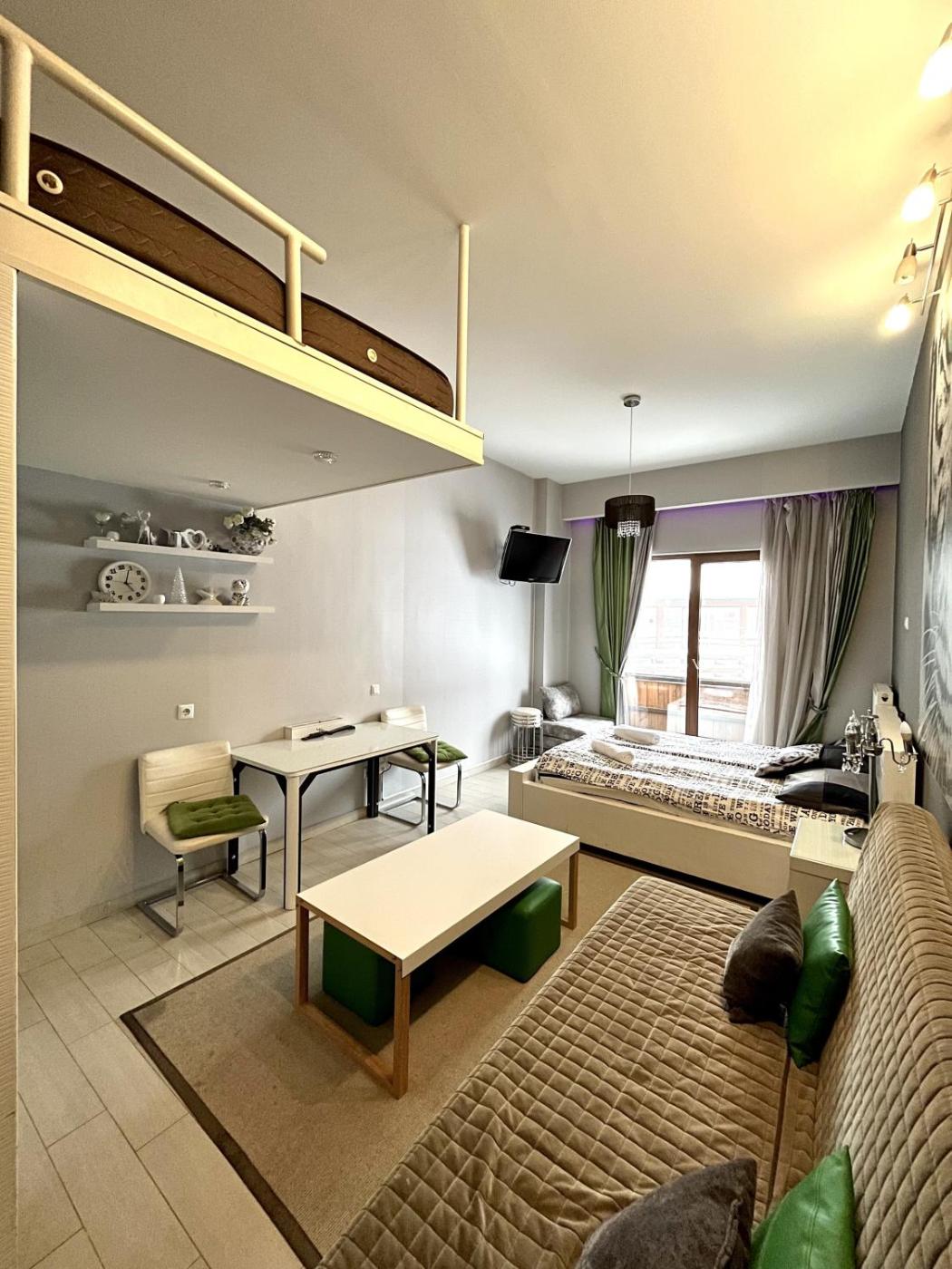 White Tiger in New Gudauri II in Gudauri provides accommodation with a casino, a bar and a shared lounge. Private parking is available on site. The apartment features a sun terrace, a 24-hour front desk, and free WiFi is available throughout the property.