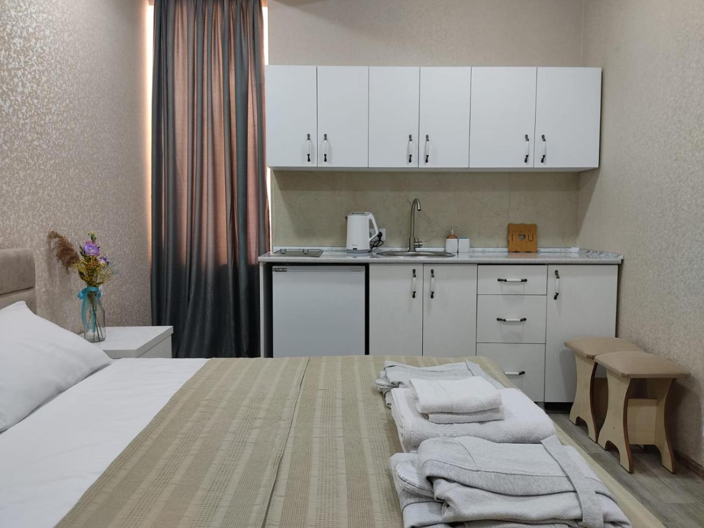 Deluxe Double Room with Balcony. Offering free toiletries and bathrobes, this double room includes a private bathroom with a bath, a shower and a bidet. The well-equipped kitchen features a stovetop, a refrigerator, kitchenware and an electric kettle. The double room offers air conditioning, a dining area, a wardrobe as well as a balcony with city views. The unit offers 1 bed. ;