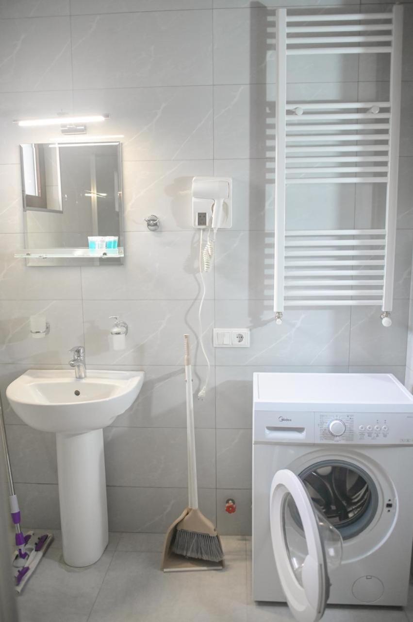 One-Bedroom Apartment. The air-conditioned apartment features 1 bedroom and 1 bathroom with a walk-in shower and a hairdryer. Meals can be prepared in the well-fitted kitchenette, which comes with a refrigerator, kitchenware and a microwave. The apartment has a washing machine, a wardrobe, an electric kettle as well as a balcony with ancourtyard view. The unit offers 1 bed.