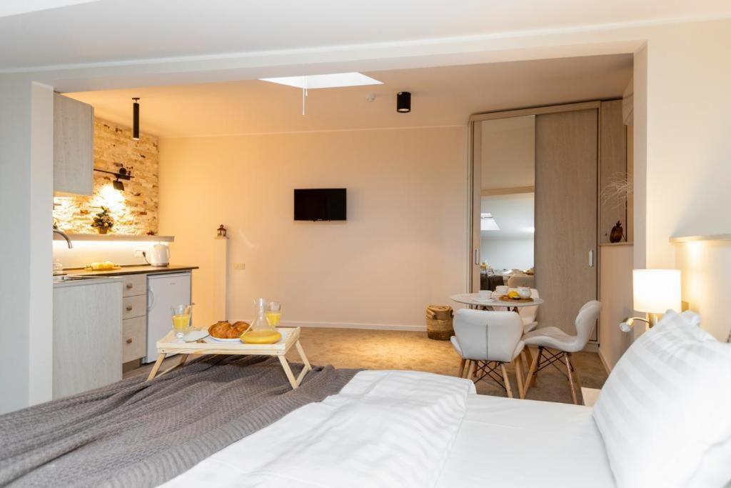 King Studio with Sofa Bed. Featuring free toiletries and bathrobes, this studio includes a private bathroom with a walk-in shower, a bath and a hairdryer. Guests can make meals in the kitchen that features a stovetop, a refrigerator, kitchenware and a microwave. The air-conditioned studio features a flat-screen TV with cable channels, a washing machine, a private entrance, soundproof walls as well as garden views. The unit has 2 beds. ;